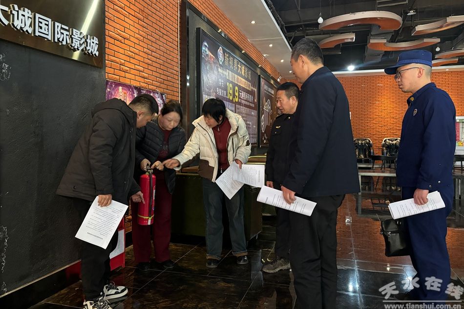 新甘谷讯【通信员王蕊】为确保春节期间片子放映场合平安有序运营,甘谷县委宣传部结合县文旅局、市场监管局、消防救援大队等部分,对县域内片子院开展平安出产专项查抄。确保群众渡过一个平安的新春佳节。查抄组先后深切新视界大诚国际影城、永利激光影城,通过集中培训、现场查抄、材料查阅、实操查核等体例,市场监管法律人员对食物发卖区域卫生许可证、从业人员健康证明、食物平安消息公示栏等进行了核查。现场指点灭火器操做利用及应急分散练习训练;查抄组就地提出整改看法,
